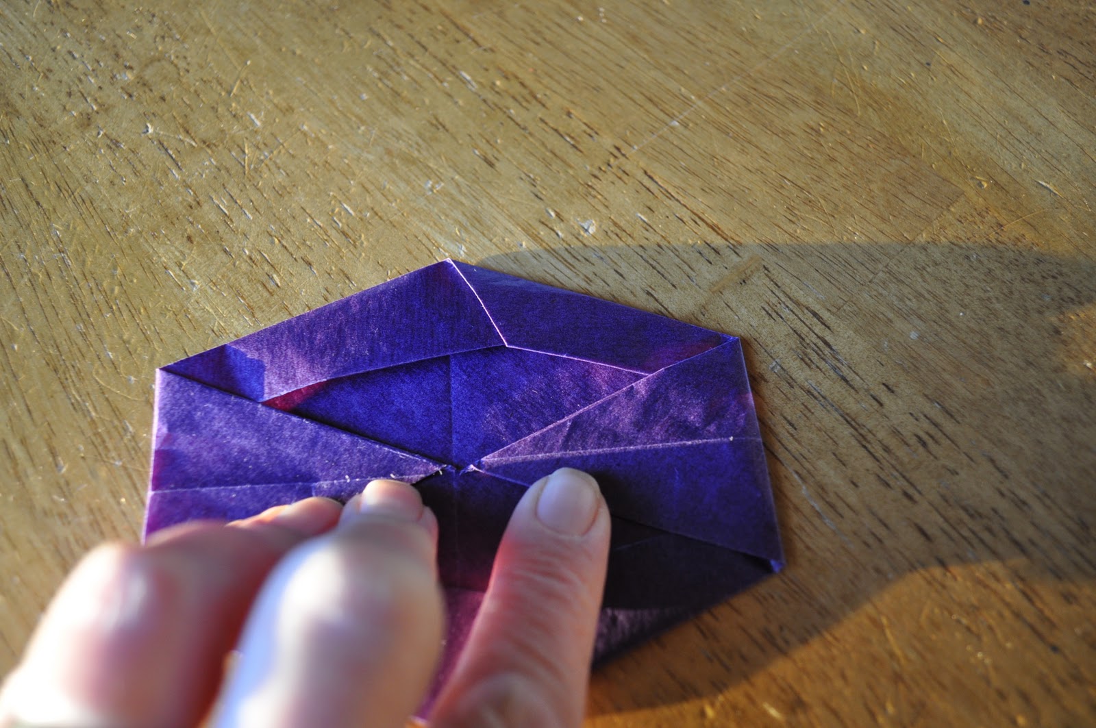 then to make the points on each side-take the flat ends and fold each side to the center line