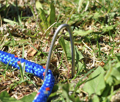 - use the excess staples to secure the rope where it doesn’t lay directly on the ground-maybe you’re lucky and your lawn in flat, our field is kinda