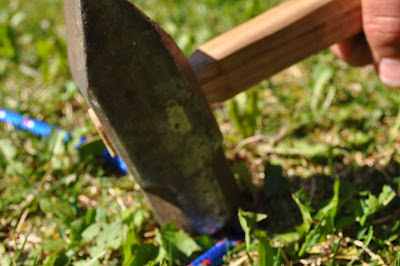 - once it’s even and looks good set your staples by hammering them in, don’t crush them just tap until they’re flush with the ground