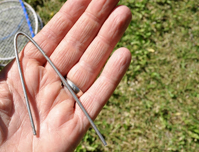 - make your staples and have them ready to go, use wire snips to cut the wire about 6 inches long and bend into giant V shaped staples