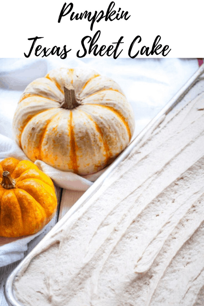 You had to know this was coming what with my Texas Sheet Cake this summer and my ever-popular best cookies ever Texas Sheet Cake Cookies, this recipe was bound to come out! If you want a deeper cake that’s not as big go ahead and try this Pumpkin Crunch Cake or this luscious Pumpkin Poke Cake!