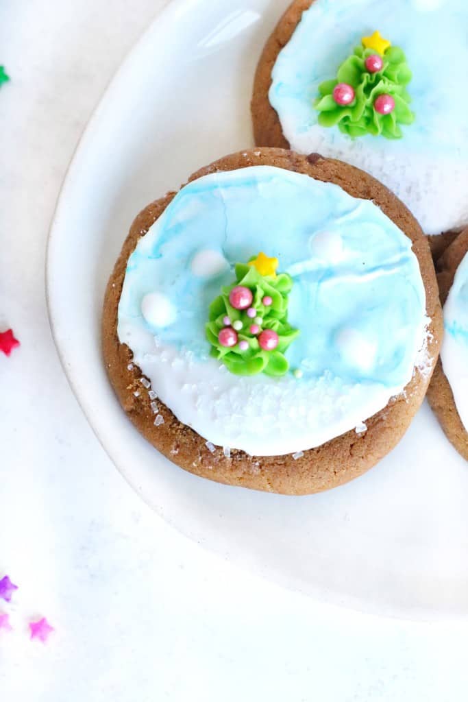 AND a buttercream in tree green. Use my Semi-Homemade Buttercream Recipe, it’s SO easy to make! You will also need piping bags and gel colors to tint the icing and frosting. Plus a star or flower tip to make the tree!