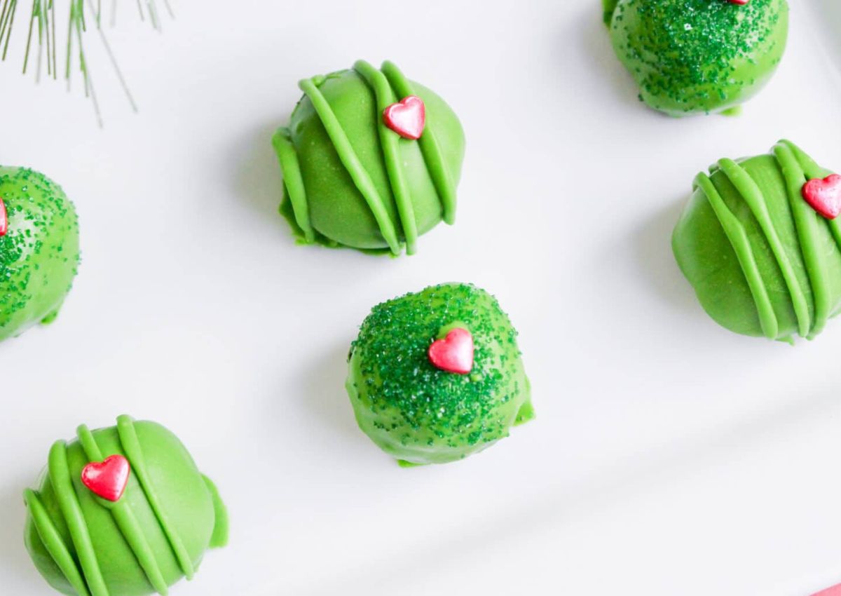 Cute Grinch Oreo Balls use green-tinted Oreo filling and a red candy heart for decoration. They’re festive and instantly recognizable for the holidays. The flavor stays classic chocolate Oreo, making them familiar and easy to enjoy. These work well on cookie trays or dessert boards.