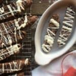 cool completely on wire racks, once they are cooled melt the white chocolate in a double boiler, when melted use a fork to drizzle over the biscotti, cool completely before storage