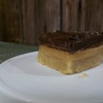 then melt together the chocolate chips and 1 tsp of butter, spread over the cooled base and caramel